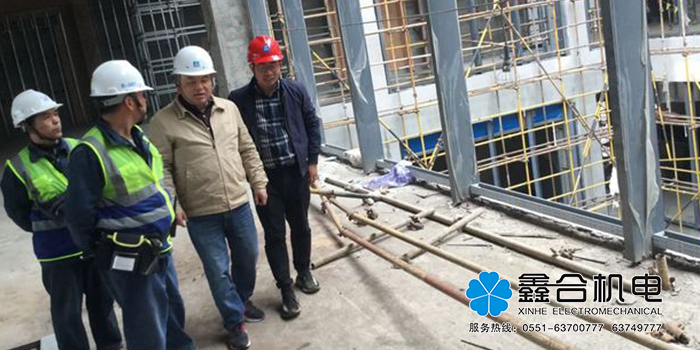 2019年4月10日,安徽鑫合機電總經(jīng)理曹克忠至上海市奉賢區(qū)上海金融基地酒店項目考察及現(xiàn)場指導(dǎo)工作,三局項目經(jīng)理李志佳、鑫合機電項目經(jīng)理湯大海及張友學(xué)陪同參觀考察。